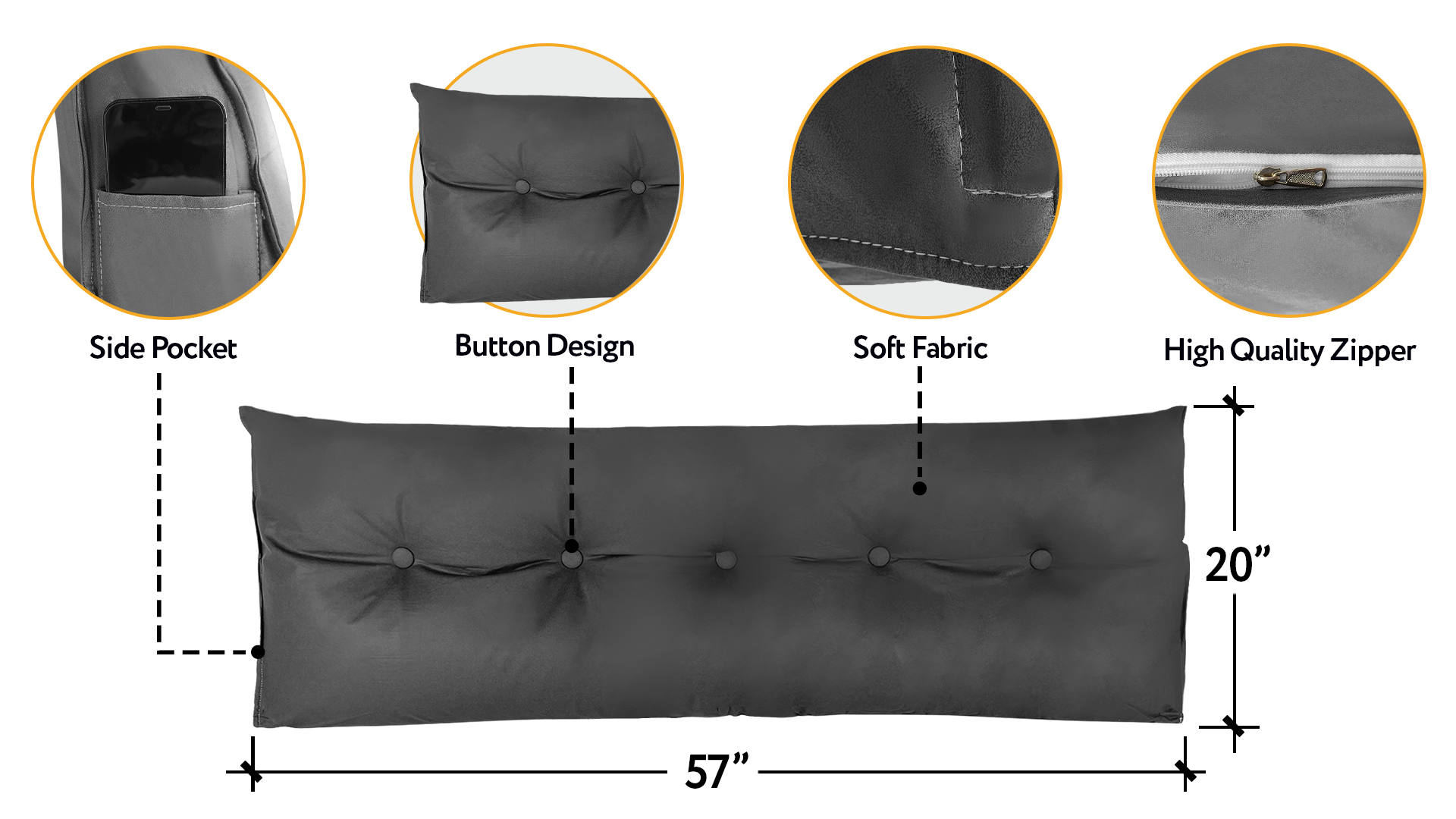 - Dimensions: Each luxury headboard pillow measures 57 x 6 x 20 inches (fits queen-size mattresses).